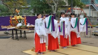 福田天満宮(福田本町)秋季大祭は、10月25日(土)午前10時から福田天満宮本殿において福田地区の氏子総代・自治会の役員、諸団体などの代表らが参加するなか「福田天満宮秋季大祭の祭典」、13時から中学一年生によるお神輿巡幸が執り行われた。宮本宮司によれば福田天満宮は、福田村の守り神として寛永12年(1...