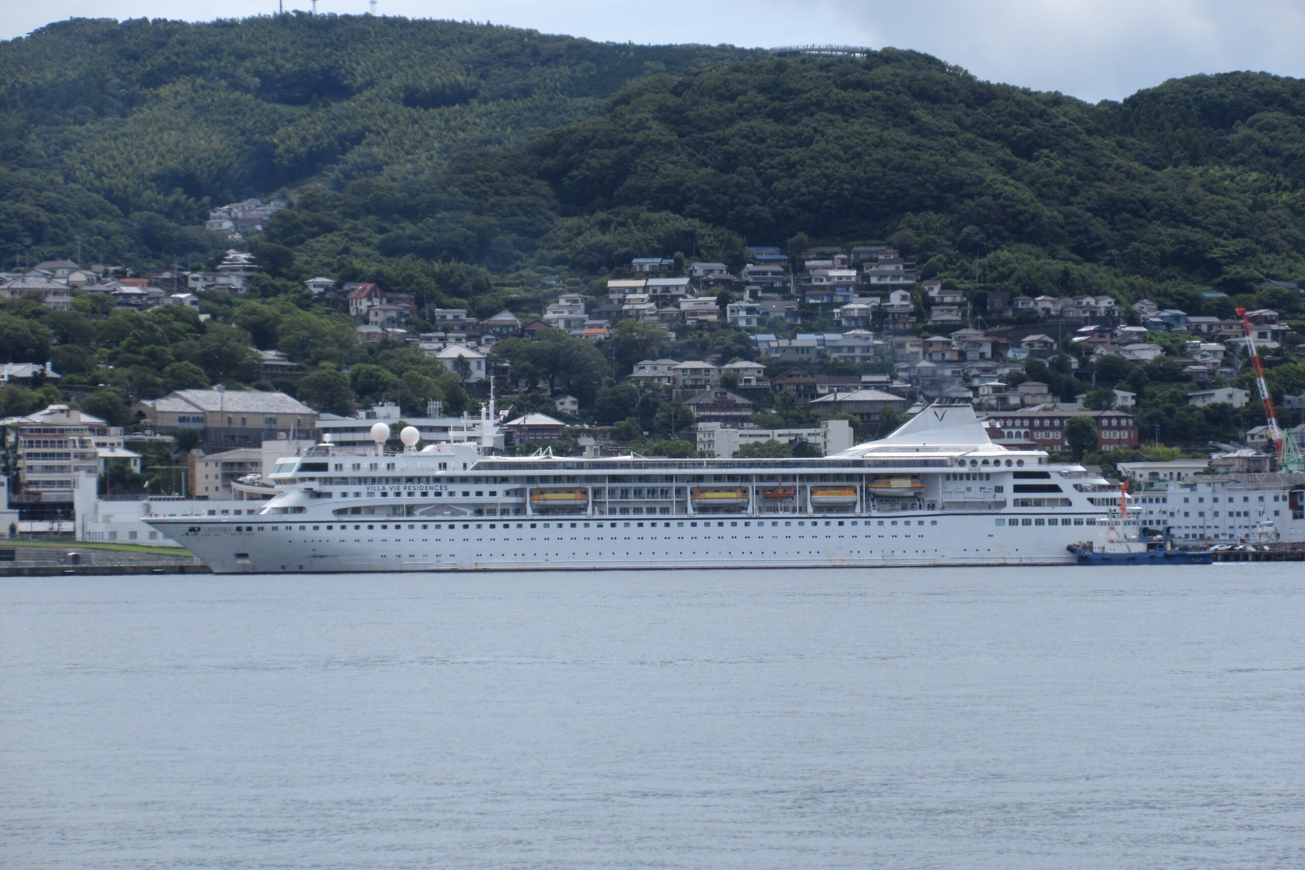 9月27日に寄港した“ダイヤモンド・プリンセス”船籍はイギリス 、総㌧数115,906㌧、全長290㍍、全幅37.5㍍、高さ54㍍、デッキ数18層、旅客定員,706人、乗組員数1,238人、韓国(釜山)から長崎(松が枝)へ、そして静岡(清水)へ向かう。このダイヤモンド・プリンセスは、米国に本拠地があるカーニバル・コーポレーション傘下のプリンセス・クルーズ社が運航、同型の姉妹船にサファイア・プリンセスがある。(一番下段の客船は8月27日初入港したオデッセイ)
