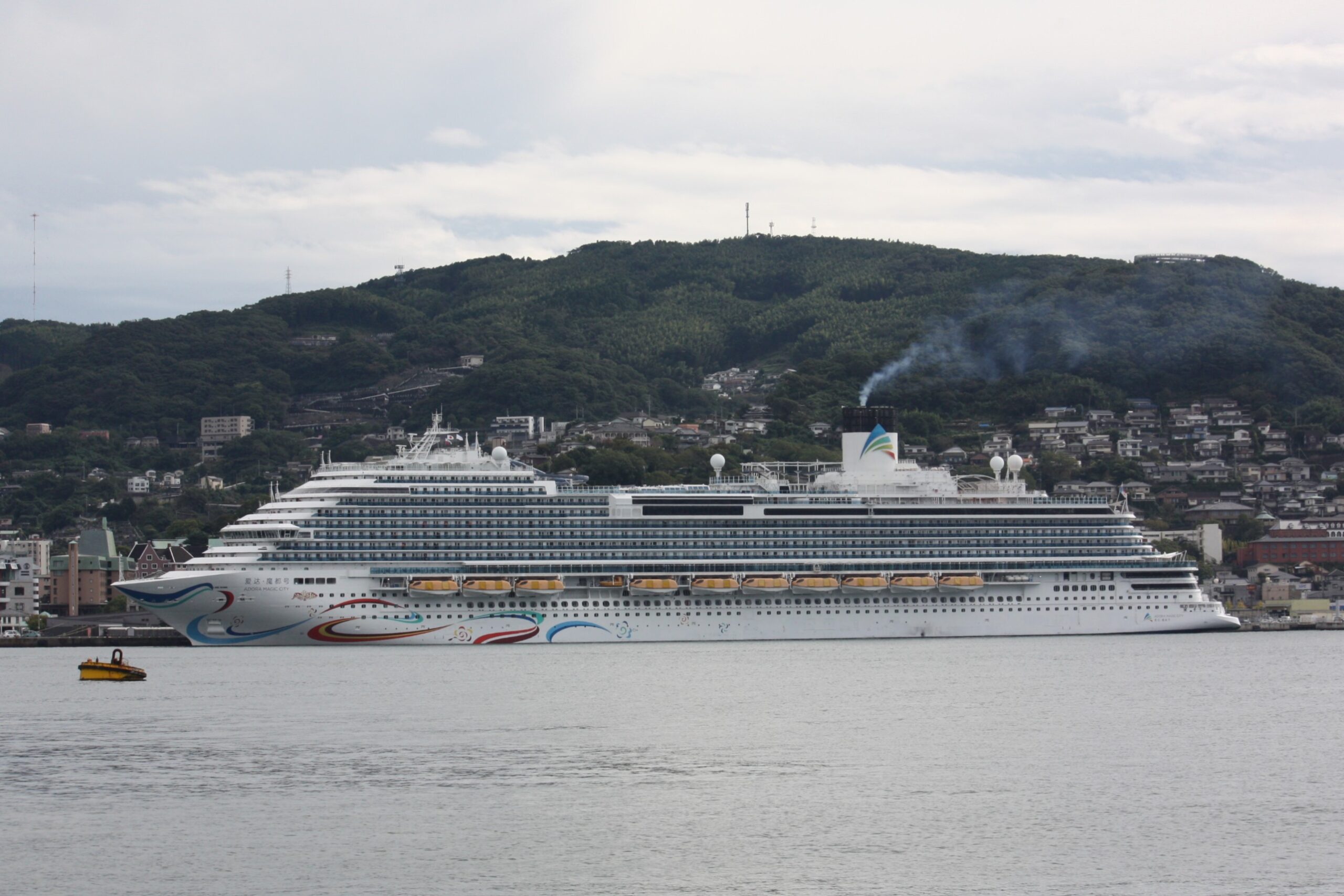 次に、11月1日に寄港した“ダイヤモンド・プリンセス”船籍はイギリス 、総㌧数115,906㌧、全長290㍍、全幅37.5㍍、高さ54㍍、デッキ数18層、旅客定員,706人、乗組員数1,238人、韓国(釜山)から長崎(松が枝)へ、そして横浜へ向かう。このダイヤモンド・プリンセスは、米国に本拠地があるカーニバル・コーポレーション傘下のプリンセス・クルーズ社が運航、同型の姉妹船にサファイア・プリンセスがある。また、11月4日に寄港した“セブンシーズ・エクスプロラー”船籍はマーシャル諸島、総㌧数55,254㌧、全長223.74㍍、全幅31㍍、乗客定員750人、乗組員数542人、韓国(釜山)から長崎へそして別府に向う。
