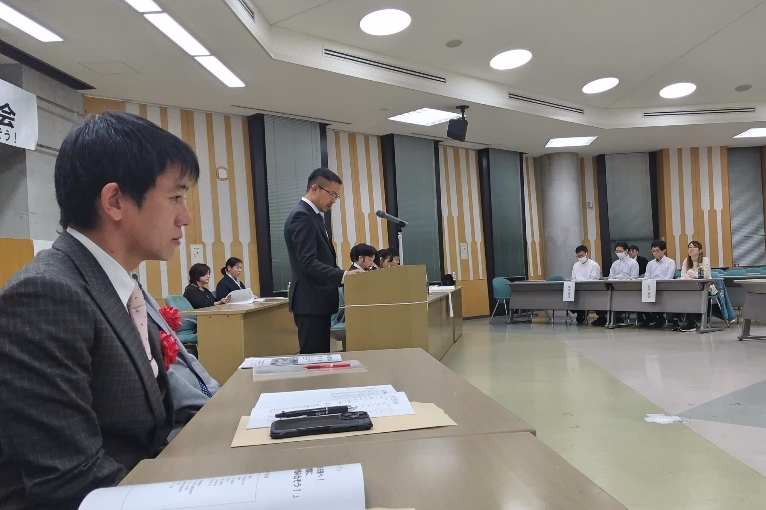 来賓挨拶では、寺脇克典執行委員長(三菱重工労組長船支部)より「上部団体の組織名称は変更になるが、活動内容は変わらず。物価高騰で厳しい状況にあるが、生活者の視点で政策実現活動の推進に努力する。2025年の賃金増額はほぼ満額回答を受けた。三菱長船まつりでは物品は完売し、チケットの残った分は来年に持ち越すことになった」、中村泰輔県議より「昨年の衆議院選挙、本年の参議院選挙において政権与党を過半数割れに追い込み、国会の動きに変化を与えている。人口減少が続く中、ものづくりの製造業におけるサポートをしていきたい」との挨拶があった。定期大会では、第13期活動報告・会計報告、審議事項では第14期活動方針・予算、役員・職場委員紹介など、大会スローガンは「全ての仲間とより良い未来へ!たゆまぬ進化を確実に、新たな一歩を踏出そう!」と執行部より提案され、満場一致確認・採択された。