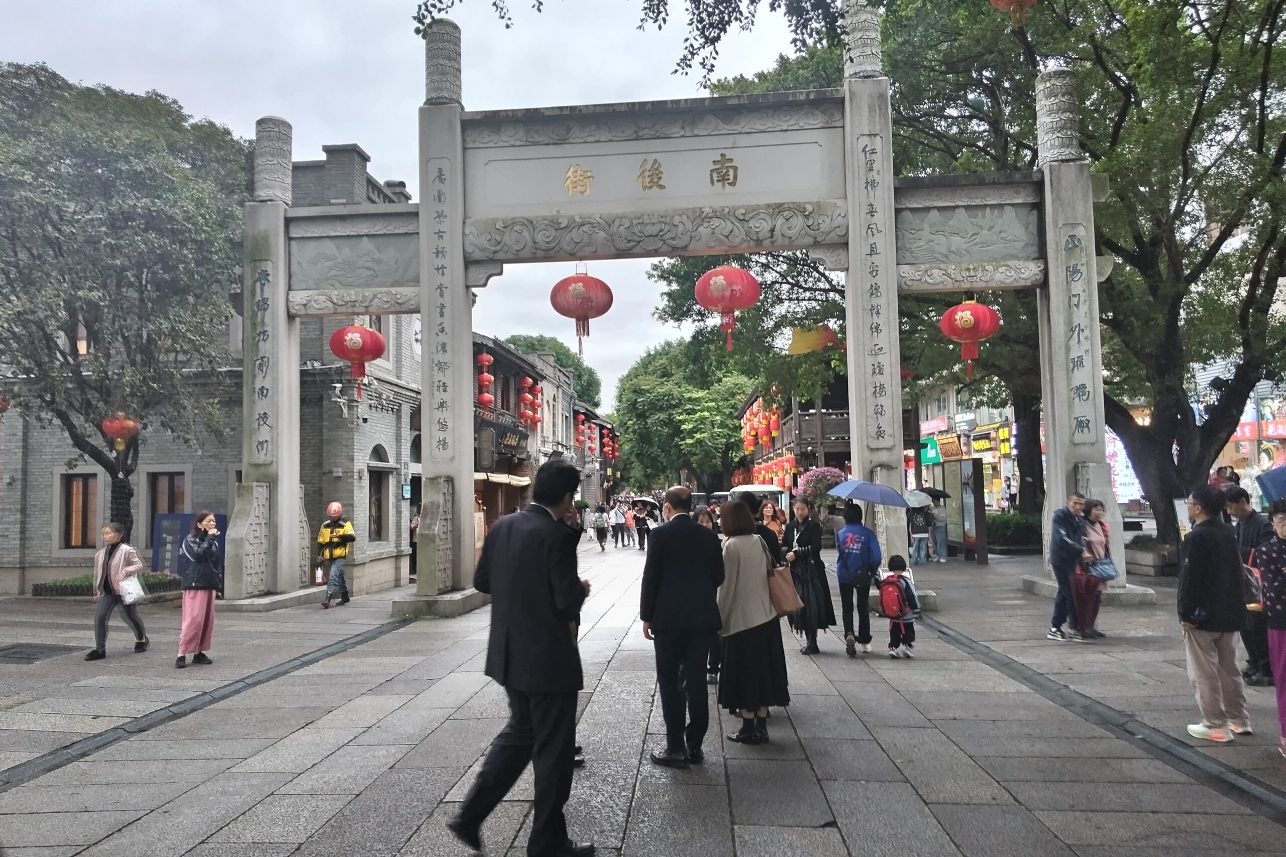 また、11月12日(視察3日目)午後からは三坊七巷を視察、三坊七巷は市街地の中心に位置し907年~960年の時期に形成された街で、北から南へ10本の通リが並び坊は役人や文化人等は多く住み、巷は庶民が住んでいた下町であったという。明・清朝時代から現在まで続く街並みが印象的であった。古き建築物や道路が修復され、歴史的景観が再現され歴史を活かしたまちづくりが行われ、多くの観光客で賑わっていた。