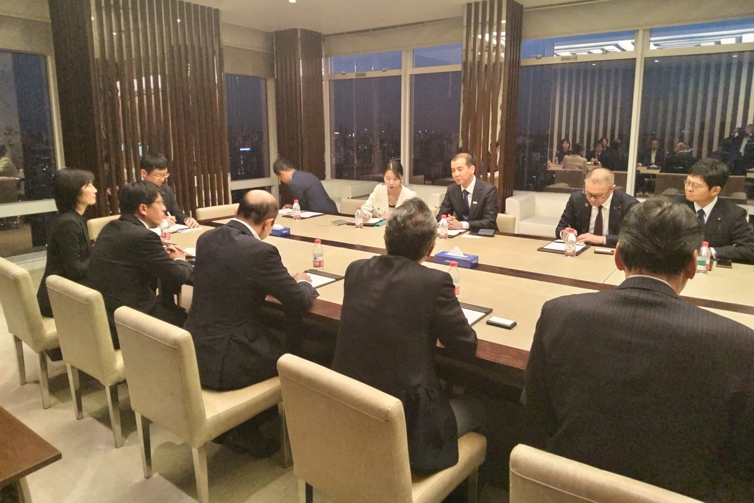 また、11月14日(視察4日目)黄檗山万福寺視察後、上海市に移動するため福州長楽国際空港に向い、空路上海に飛び立ち、上海浦東空港から上海国際貿易センターへ移動するも大渋滞に遭遇した。上海における長崎鮮魚は、2005年(平成17年)長崎魚市の中国向け鮮魚輸出開始に伴い、2020年(平成2年)コロナ禍の影響で一時的に輸出ストップ、2023年(令和5年)ALPS処理水放出直後に中国が日本水産物輸入全面停止措置を発動し、輸出はストップ状態となっている。2025年(令和7年)5月に、日中政府間で日本水産物の中国への輸出再開に向けた手続き合意を踏まえ、今回、上海一網鮮王経理と面談し、長崎鮮魚のトップセールスとなった。これまでに長崎鮮魚の中国における販売は、上海、北京、広州・天津など110都市、2,400店舗以上で販売され、魚種は豊かな天然魚をはじめ、養殖のクロマグロ、ブリ、マダイ等で、天然魚ではレンコダイ、アジ、シマアジ等販売されている。