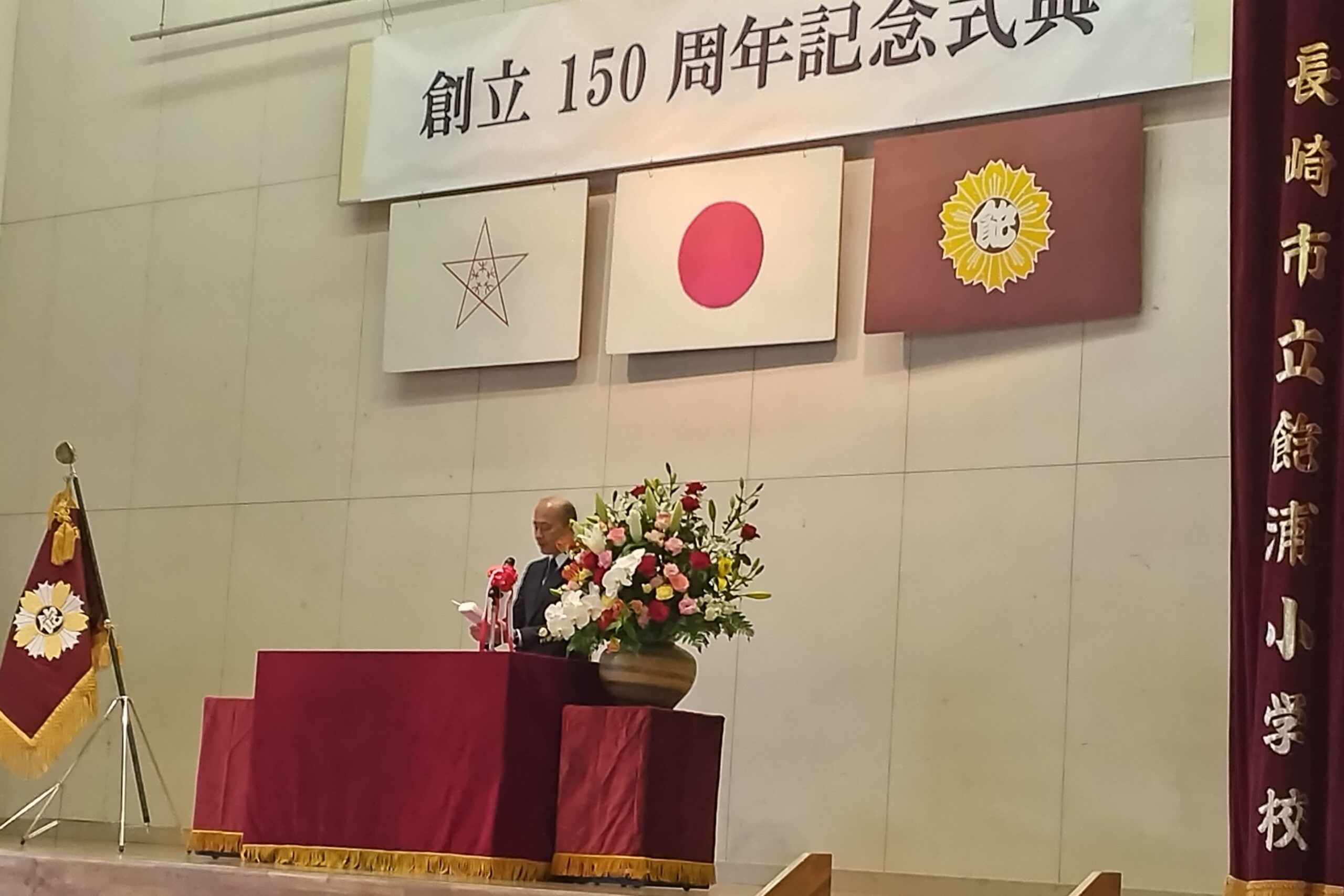 長崎市立飽浦小学校(澄川利樹校長)は、11月30日(日)8時45分から飽浦小学校において来賓・学校・地域の関係者らが出席して「飽浦小学校創立150周年記念式典」「マジックショー」「飽浦フェスタ」を執り行った。式典では実行委員会を代表して「これからも子ども達の笑顔のために保護者、地域の皆様の支えをお願いする」、澄川校長より「飽浦小学校は三菱長崎造船所の発展とともに歴史と伝統が築かれた。小学校の校歌にもある♪労を惜しまず 起重機の重さに耐うる 心もて♪を紹介し、卒業生がこの町を支え、成長してきた」との挨拶があった。来賓を代表して鈴木市長より「明治8年に開校、仲良く、助け合い、郷土を守ってきた。150年は記念すべき節目であり、新たなスタートになる」とお祝いの言葉が述べられた。第2部のマジックシューは、マジシャンと子ども達が一体とになって、手品の不思議を体感し、楽しんでいた。
