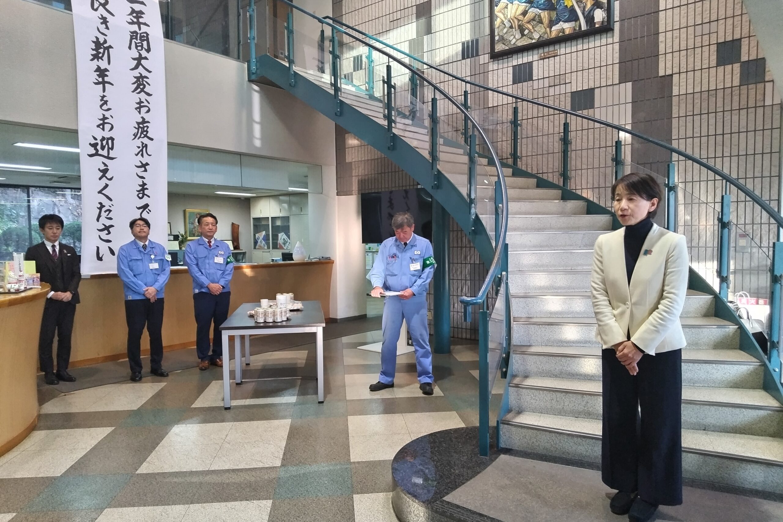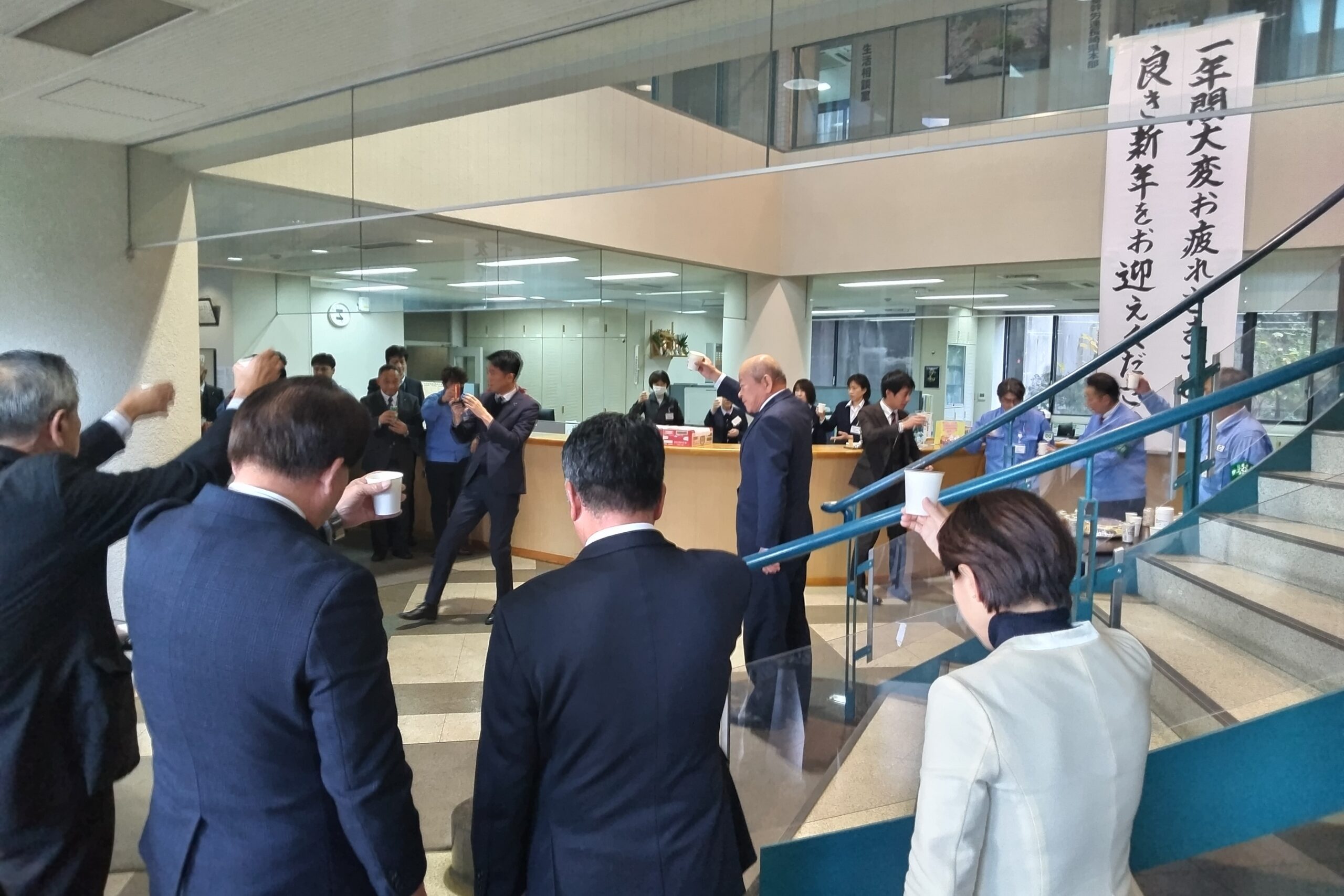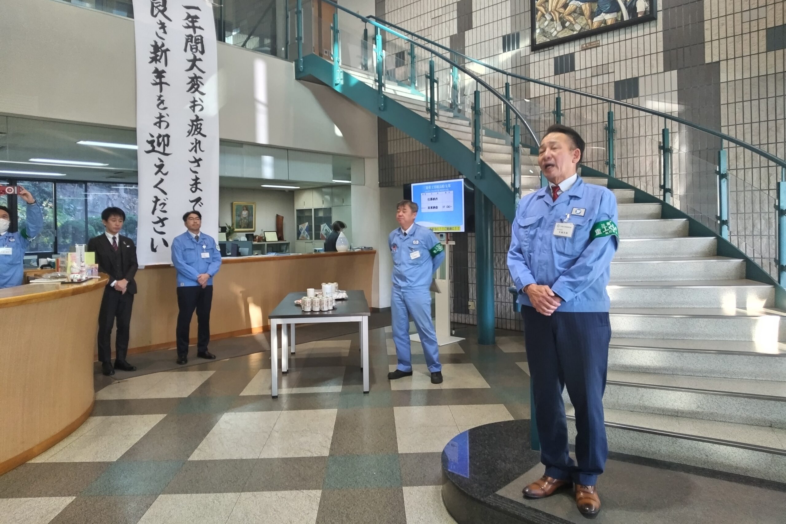 三菱重工労組長船支部(寺脇克典執行委員長)は、12月26日16時から労働会館(水の浦町)において年末恒例の「仕事納め式」を執り行った。仕事納めにあたり、寺脇執行委員長より「安全諸活動の中で重大災害を防止できたことや、ライフアップ2025の賃金交渉で満額を獲得できたことは評価できる。政策実現活動では、参院選挙において郡山りょう氏の当選を果たしたが、深堀浩氏は残念な結果となり、関係者の皆さんにお世話になった。2025年10月より組織名称も三菱重工労組と従前に戻り、執行部体制も10人から8人体制で活動を進めている」との挨拶があった。その後、会社側及び生活相談室の代表、西岡秀子衆院議員からこの1年を振り返り、お礼と感謝の言葉が述べられ、長船ダイヤモンドクラブ高比良会長の音頭で1年の労をねぎらった。