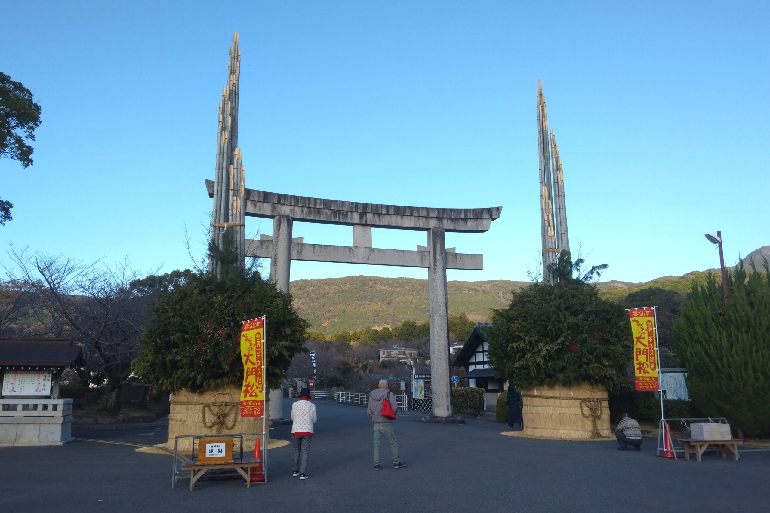 また、雲仙市千々石町の橘神社に高さ12・3メートルのジャンボ門松の報道を受け、12月29日長崎から雲仙市に向かう途中、橘神社に立ち寄りシャッターを押しました。有志でつくる実行委員会が2000年から毎年製作し、初回分は高さ9・866メートルで当時のギネス記録に認定された。大鳥居前に置かれた門松は、胴回り8㍍、モウソウチクを24本ずつ束ねて一対に仕立てたという。午後10時ごろまでライトアップされる。門松は、年神(神道の神)を家に迎え入れ、神霊が依り憑く(よりつく)という意味合いがあるとのこと。正月の参拝者数は、長崎市の諏訪神社に次いで県内で2番目に多く、近くに行く機会があったら是非立ち寄って観ては如何ですか。