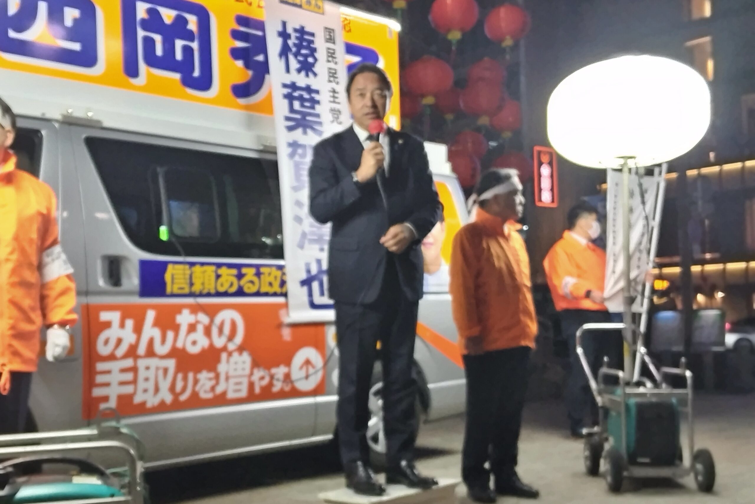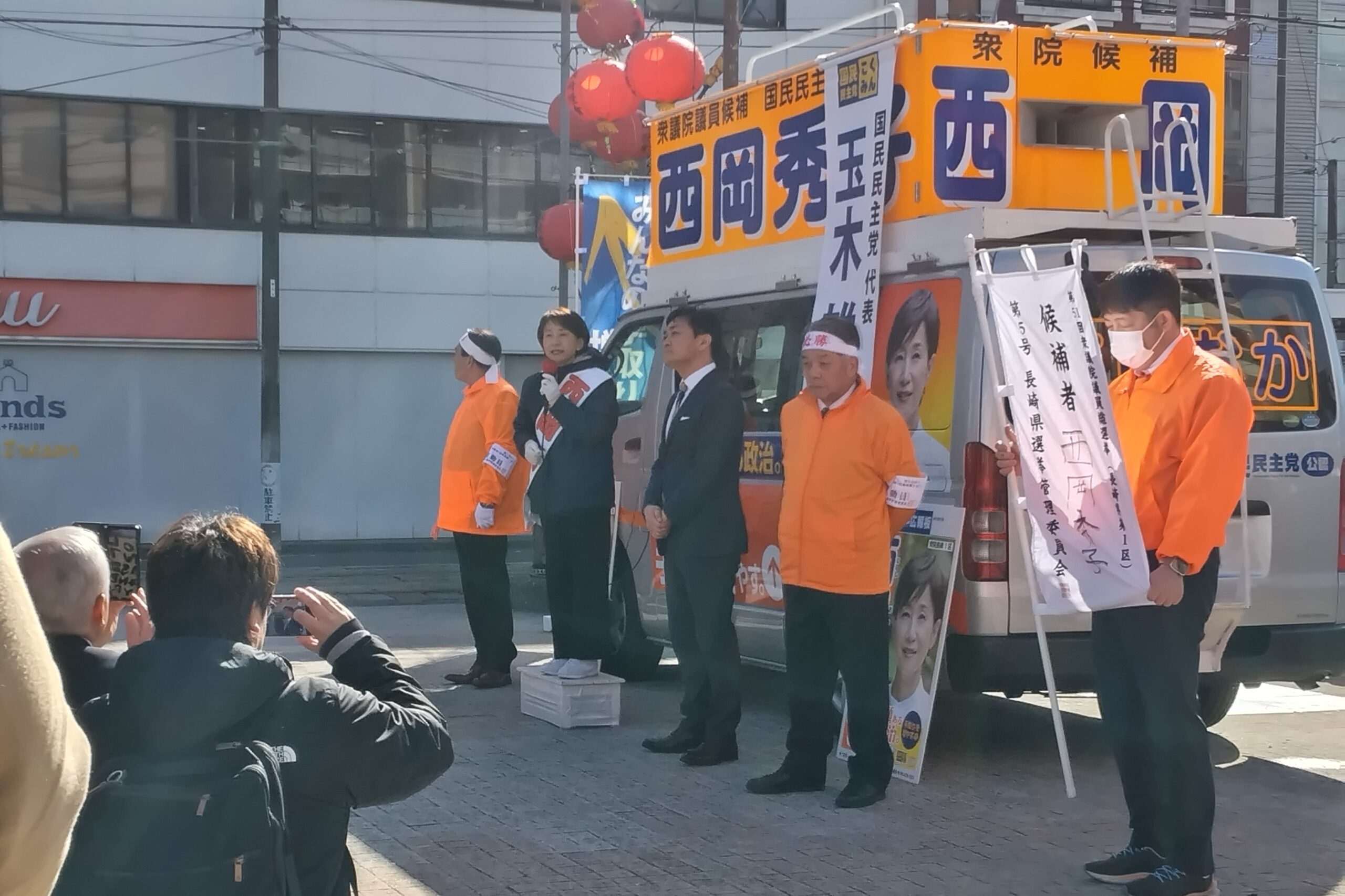 国民民主党本部の榛葉幹事長は1月27日の公示日に、玉木代表は選挙戦2日目の1月28日、4期目に挑む西岡秀子候補の応援のため長崎入りし、鉄橋において街頭演説会を開いた。衆院選公示日の27日の街頭演説会で榛葉幹事長は、「年収103万円の壁」の引き上げやガソリン税暫定税率の廃止の成果を強調し、「手取りを増やす政策を実現するのは、われわれと皆さんだ」と支援を呼びかけた。国民民主党は、2024年の衆院選、25年の参院選で「手取りを増やす経済対策」を訴え議席を伸した。一方の与党は過半数割れとなり、野党側の政策実現につながった。国民が求めるものは暮らしの安定、与野党が緊張感を持って政策を競い合い、国民に還元する政治への転換を訴えた。