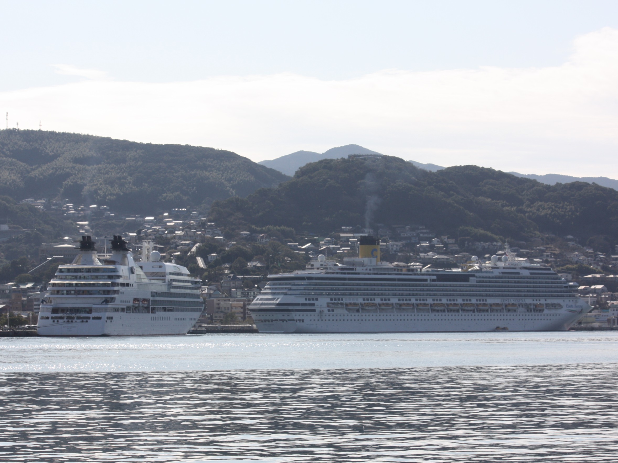 さる1月26日久方振りに長崎港へ客船がダブル寄港した。“コスタ・セレーナ”船籍はイタリア、総トン数114,261㌧、全長290.2㍍、全幅35.5㍍、乗客定員3,780人、乗組員数1,100人、韓国(基隆)から長崎(松が枝)へ、そして韓国(釜山)に向かう。コスタ・セレーナは、イタリアに本社を構えるヨーロッパ最大の「コスタクルーズ社」、現在15隻の大型客船を保有し1948年からの歴史を持ち、ヨーロッパのクルーズ市場を牽引してきたという。船籍についてはその名の通り、船舶の籍のことで、人で言うところの戸籍に相当する。船舶登録料・税金の安い国、規制のゆるい国のほか、政治の安定した国、評判の良い国、船の産業を支えてくれる国など、船籍国として多く選ばれているという。
