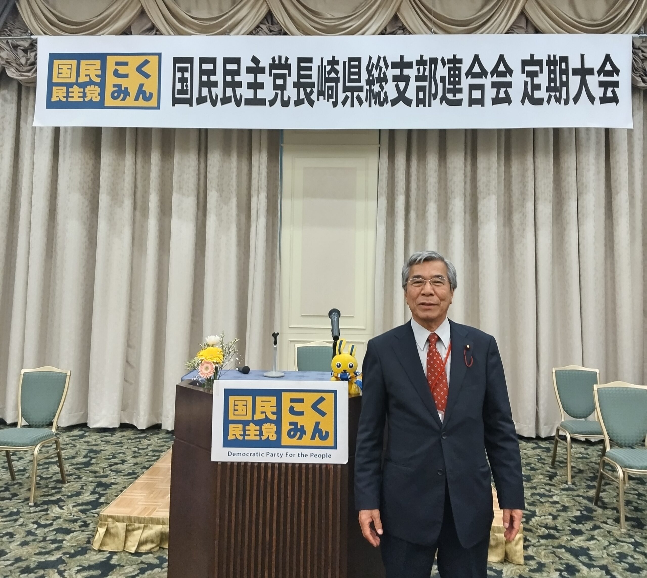 来賓挨拶では、連合長崎の岩永洋一会長より「衆参選挙は連合長崎にとって厳しい結果となり、国政運営の一強体制を危惧する。チェック機能と生活者視点の声を反映してほしい。空白区における地方議員の選出を願う」、立憲代表、社民代表唐も挨拶を受けた。活動方針では、政策課題への対応として党本部との連携、県内課題の人口減少対策、離島・半島対策、経済・雇用対策、核廃絶など本県固有の課題について、実効性のある政策提言を行う。党組織の強化と活動の取組みは、県連組織の充実・拡大を図るため空白総支部の結成に取り組む、来年の統一地方選挙に向け力を合わせて組織強化に取り組む、政治スクールを通じた人材の発掘・育成に取り組むことを確認した。