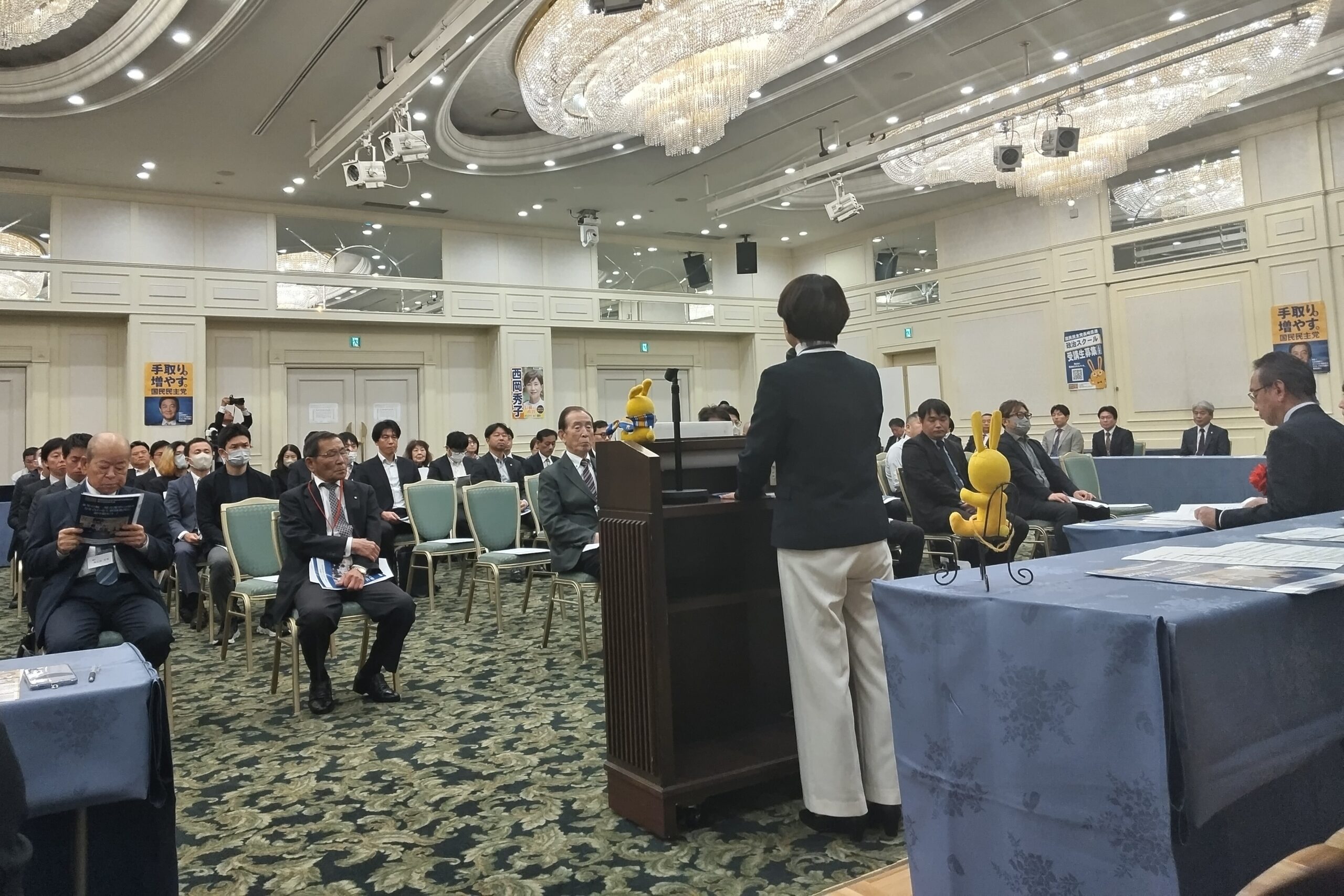 国民民主党長崎県総支部連合会(西岡秀子代表)は、3月22日支援団体・労組関係者、支援者らが出席し「第6回定期大会」を開催した。西岡秀子県連代表より「イラン情勢が厳しい状況の中、ホルムズ海峡周辺には日本が所有する59隻の船舶がおり、政府に対し安全対策を申し入れる。参院選挙における深堀浩氏は残念な結果となり、県連の力不足を痛感した。衆院解散総選挙では高市旋風の中、連合長崎を中心に6者懇含め多大なご支援を賜り、4回目の当選を果すことができた。国会の状況は強権的運営となっているが、エネルギー・物価高騰対策、被爆地長崎から核廃絶など訴えていく。来春の統一地方選挙に向けた組織強化を図る」との挨拶があった。(提案側のため大会前に撮影)